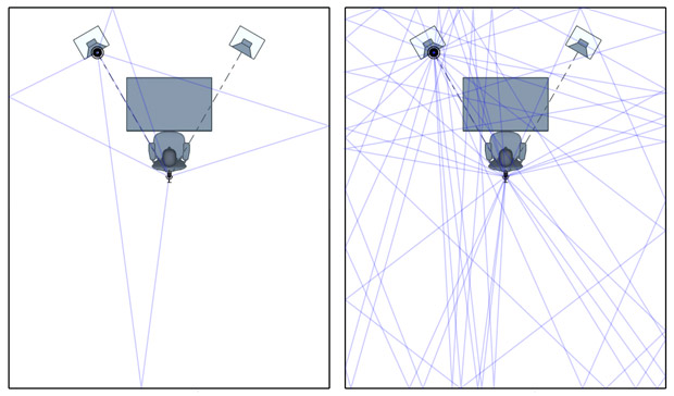 Руководство по настройке зоны без отражений, размещению акустических панелей для устранения ранних отражений и улучшения стереополя...